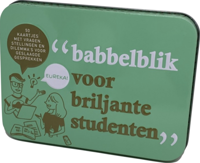 Dit babbelblik bevat 50 kaartjes met vragen, stellingen en dilemma's voor geslaagde gesprekken. Neem de kaartjes mee in de auto of op restaurant. Zo geraak je nooit uitgepraat!