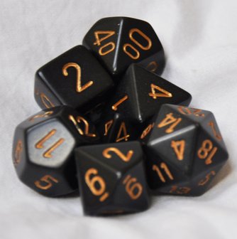 Elke set bevat telkens één exemplaar van volgende maten: d20, d12, d10, d10 (percentielen), d8, d6 en d4 Merk: Chessex