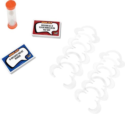 Speel het hilarische spel Speak Out nu ook met je kinderen. Zet het mondstuk in je mond en probeer je zin uit te spreken. Laat het lachen al maar beginnen!