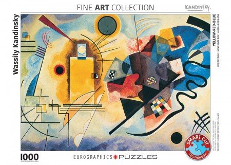 Geel, rood, blauw werd gemaakt in 1925 terwijl Kandinsky cursussen in ontwerpen en schilderen gaf. Elementen zijn geometrisch belangrijk in zijn schilderij, vooral de cirkel, halve cirkel, hoek, rechte en gebogen lijnen. Deze puzzel maakt deel uit van de Fine Art Collection van Eurographics.