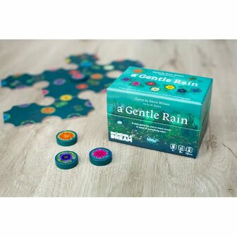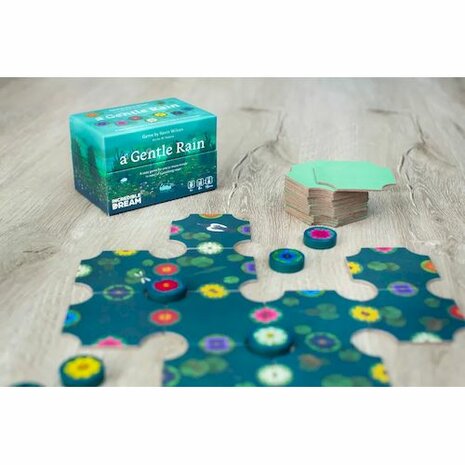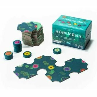 A Gentle Rain is een meditatief tegelleg spel van Incredible Dream Studios dat je uitnodigt om een serene vijver te creëren en acht verschillende bloemen te laten bloeien. Geschikt voor 1 of meer spelers, dit spel biedt een rustige, niet-competitieve ervaring waarbij elke getrokken en geplaatste tegel de speler verder onderdompelt in een vredige omgeving. Het spel bevat 28 fluweelzachte tegels en 8 houten bloesemtokens en duurt ongeveer 15 minuten, perfect voor een mentale reset op elk moment van de dag. Dit prachtige spel, met een compacte vormgeving, biedt zowel uitdaging als ontspanning​.