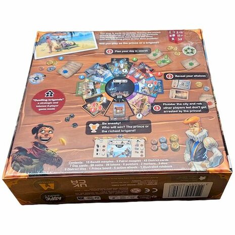 In Brigands van Matagot strijden 2-6 spelers als bandieten of prins om de schatten van de stad. Deductie, strategie en bluffen komen samen. Geschikt vanaf 10 jaar.