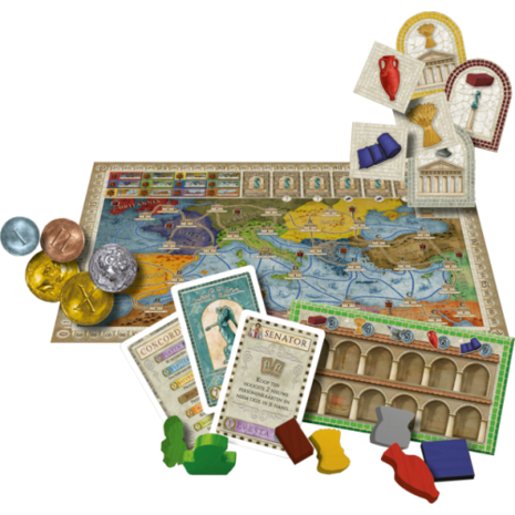 De spelers leiden hun familiedynastie en stichten handelsposten in verre steden om aan gewilde handelswaar te komen. Ze maken gebruik van machtige politieke figuren om hun doelen te bereiken. Daarvoor hebben ze de beschikking over een aantal kaarten, zoals de Prefect, de Architect of de Tribuun, die allen hun eigen functie hebben. Spelers kunnen er zelfs personages bij kopen. De goden op zijn kaarten bepalen waar hij aan het einde van het spel punten voor krijgt.