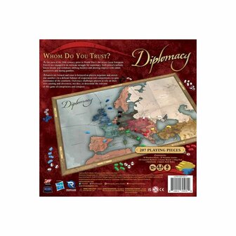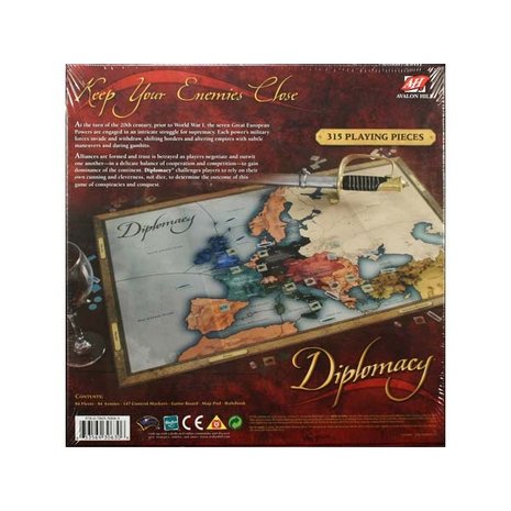 In het bordspel Diplomacy nemen 2-7 spelers de leiderschap op zich van één van de zeven Europese supermachten uit het begin van de twintigste eeuw. Kies uit Groot-Brittannië, Frankrijk, Duitsland, Italië, Oostenrijk-Hongarije, Turkije of Rusland. Probeer met de beschikbare eenheden 18 van 34 aanwezige aanvoergebieden op het bord te veroveren. Maar om dat voor elkaar te krijgen heb je de hulp nodig van de andere spelers die de gebieden in hun macht hebben. De belangrijkste regel daarbij: geen enkele afspraak, die is gemaakt tijdens het onderhandelen, is bindend. Dit kan verstrekkende gevolgen hebben. Maar als je te vaak je afspraken schendt, vertrouwt geen enkele andere speler je meer. Met diplomatiek werk, het maken en breken van bondgenootschappen op het juiste moment en strategisch inzicht kun je het spel winnen. Tenzij je zelf wordt verraden....