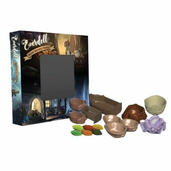 This is a deluxe accessory for the game Everdell. Place your resources in beautiful resource trays. The Deluxe Resource Trays can hold berries, branches, resin, pebbles, pearls, coins, occupation tokens and special event cards.
