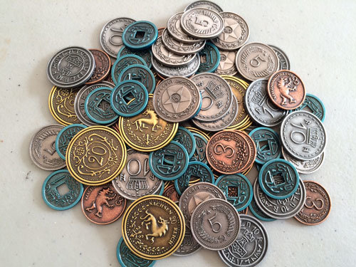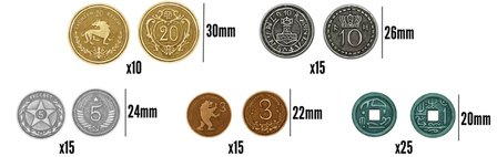 Deze munten zijn geweldig! Het gevoel van echte munten in je hand is veel beter dan de kartonnen versies uit het spel zelf. Zeer aan te bevelen om je eigen versie van Scythe te upgraden.