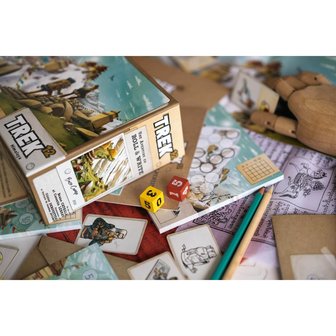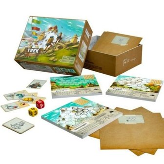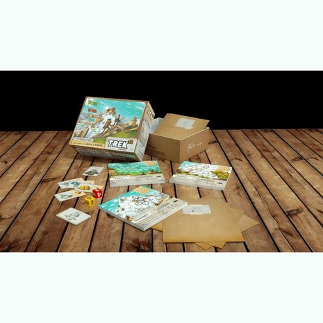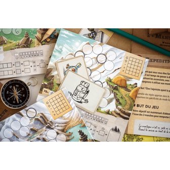 Trek 12 is a legacy roll & write game by Bruno Cathala (7 Wonders Duel, Five Tribes, Kingdomino) and Corentin Lebrat (Draftosaurus).