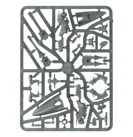 Swooping, jinking and arcing across the skies at unbelievable speed, turning at impossible angles, the Windriders are jetbike pilots completely in tune with their machines. Striking suddenly and violently with hailstorms of shuriken fire before climbing away with consummate grace, Windriders often destroy their prey even before the whine of their antigravitic engines broadcasts their presence. This multi-part plastic kit contains seventy-two parts - everything you need to make three Aeldari Windriders. Incredibly sleek jetbikes with an array of sensors on the back adding interesting textural detail, they have the option of an elevated HUD - ready for an attack run. Their shuriken catapults can be upgraded to either a shuriken cannon or scatter laser; three of each are included, meaning nine weapon options in the box. Also included are three new guardian helmets, three small flying bases and an Aeldari transfer sheet.