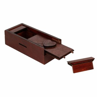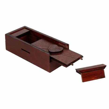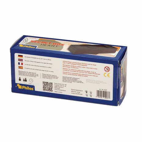 The Secret Box Heart by Philos is a beautifully crafted wooden brainteaser with a heart-shaped design. The challenge is to find the hidden mechanism to unlock the box, providing a unique puzzle experience. This stylish puzzle can also be used as a secret compartment for small valuables or as a creative gift box. Made from dark brown lacquered plywood, the Secret Box Heart is suitable for ages 6 and up and offers moderate difficulty for a quick but engaging puzzle challenge.