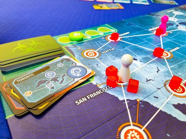 Disease threatens North America and only you can stop it! In Pandemic: Hot Zone - North America, players work together against the game to discover cures for three deadly diseases that threaten the continent. Travel to different North American cities to treat local populations, prevent outbreaks, and share research with your team. Can you discover the cures before it's too late? Hot Zone - North America is a shorter, more portable version of the best-selling cooperative game Pandemic.