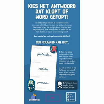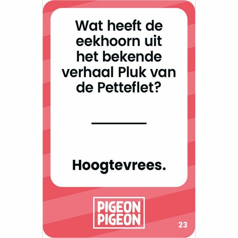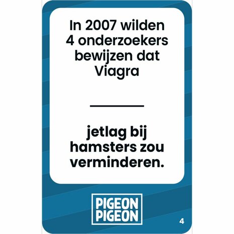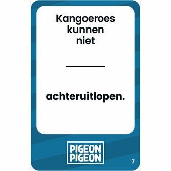 Pigeon Pigeon is een hilarisch partyspel van Blue Orange Games dat draait om bluffen en creativiteit. Het spel is ontworpen voor 3 tot 10 spelers en is geschikt voor spelers van 12 jaar en ouder. Een typische speelronde duurt ongeveer 30 minuten, waardoor het perfect is voor feestjes en bijeenkomsten.