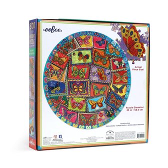 Beautiful puzzle by Fumiha Tanaka. Round puzzle with a diameter of 58,5 cm. Round puzzle. This collage of the colorful butterfly and moth family will enchant any puzzler. Featuring art by Fumiha Tanaka.