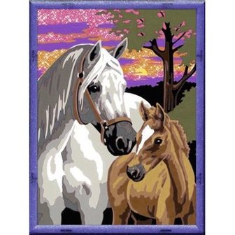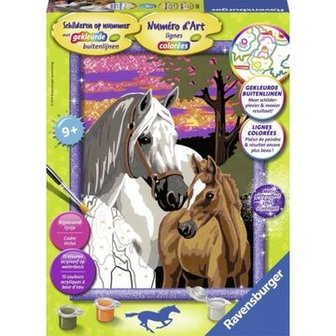 Schilderen op nummer: Paarden bij Zonsondergang Schilderen op nummer: Paarden bij Zonsondergang