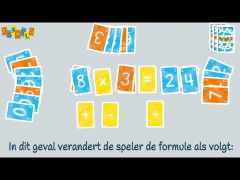 In het midden liggen 2 kaarten met cijfers en de bewerkingskaarten (+, –, ×, ÷, =). Elke beurt leg je maximaal 3 kaarten: een bewerking en het juiste resultaat. Kom je er niet uit? Dan pak je bij. Haak in op bestaande formules om complexere rekensommen te maken. Kaartjes met Joker vullen getallen op.