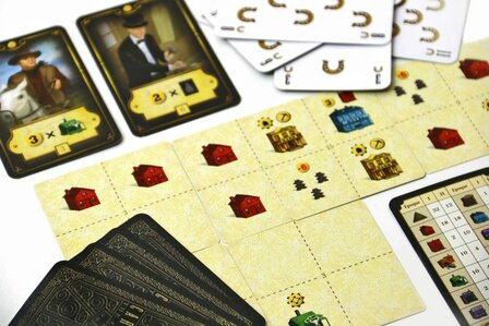 In Carson City: The Card Game, each player is in charge of developing a city. You and your opponents try to choose the most lucrative parcels of land and buildings, then place these parcels and buildings wisely so as to make your city as prosperous as possible. You can also win the support and gain the help of the most influential people in the city. Do not ignore your opponents as they will try to make the best moves in your stead, with a trick-taking mechanism determining who goes first in each round.
