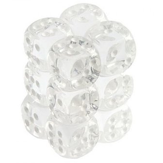 Dobbelstenen D6 (16mm) Translucent Clear/White (12x)
