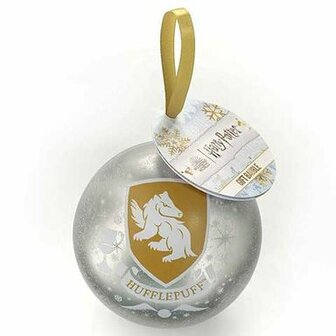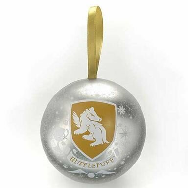 Une boule de Noël sur le thème d'Harry Potter. À l'intérieur de la boule se trouve un magnifique bijou : un collier de Hufflepuff. Tu peux accrocher la boule dans le sapin de Noël après, l'utiliser comme boîte de rangement ou la réutiliser comme boîte cadeau. Le cadeau de Noël idéal pour les fans d'Harry Potter.