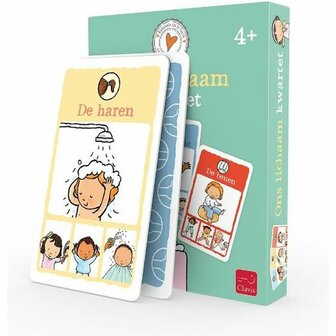 En jouant, les enfants apprennent à connaître leur propre corps et celui des autres. De plus, grâce aux cartes parlantes, ils apprennent à exprimer leurs expériences et à s'écouter les uns les autres. Les jeux tels que quartet stimulent non seulement le comportement social des enfants, mais leur font également découvrir toutes sortes de nouveaux mots et concepts. Les enfants pratiquent également leurs techniques de conversation et apprennent à s'exprimer de mieux en mieux. L'arithmétique préparatoire est également abordée : compter, trier et faire des séries.