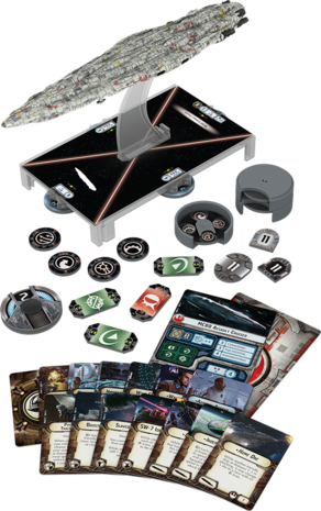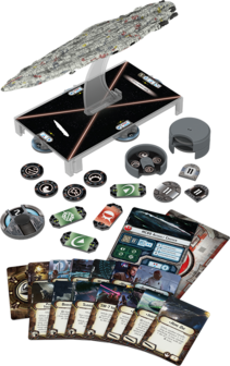 Featuring one large-size, pre-painted miniature MC80 star cruiser, two ship cards, three command dials, and fourteen upgrades, the Home One Expansion Pack gives the Rebel Alliance a ship that boasts battery armaments of six dice from both its left and right hull zones, making it capable of trading blow for blow with nearly any Imperial vessel and empowering a whole new set of tactics that you can employ in your battles for galactic freedom!