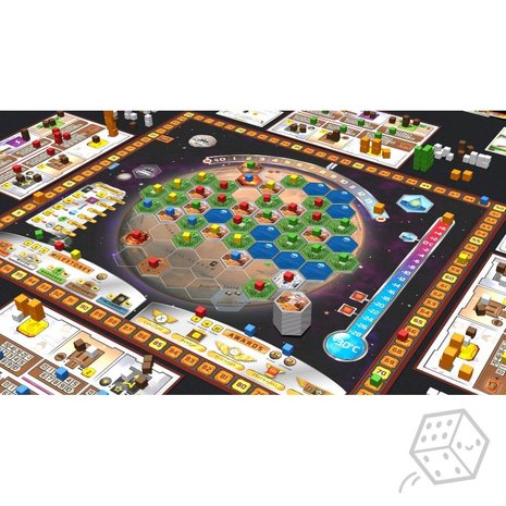 In dit spel probeer je mars zo snel mogelijk leefbaar te maken, onderweg verzamel je allerhande grondstoffen en bouw je projecten uit. Afhankelijk van de 'corporatie' die je op het begin kiest, kan je verschillende kanten uit. Het is een heel strategisch spel met wel wat denkwerk, je bent makkelijk 2 uur bezig. Het is zowel met 2 spelers als meerderen leuk. Het zou van mij 5 sterren krijgen als de doos wat beter ingedeeld was en de spelerbordjes van iets betere kwaliteit waren.