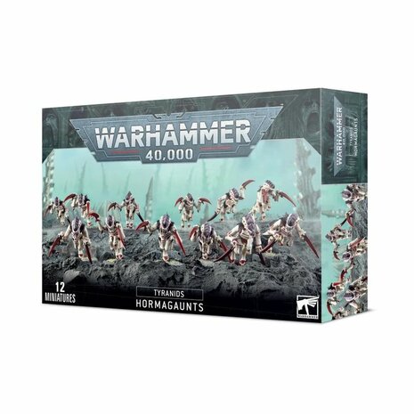 This box set contains 12 multi-part plastic Hormagaunts. This 72-piece set includes: four different head designs and two different body designs. Models supplied with 25mm round bases.