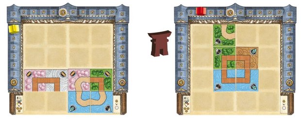 Un tour dans Zen Garden est simple: le premier joueur sélectionne une tuile du tableau de sélection, paie son coût, puis l'ajoute à son jardin adjacent à une tuile précédemment placée. Chaque joueur fait cela, puis le plateau est rempli et un nouveau joueur débutant commence le tour suivant.