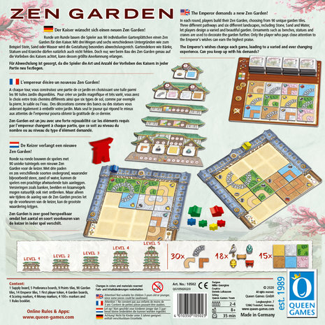 Dans Zen Garden, les joueurs jouent le rôle d'architectes travaillant à la construction du plus beau jardin de l'empereur. Pour ce faire, ils doivent prêter une attention particulière aux préférences de l'empereur, tout en essayant de garder une longueur d'avance sur la concurrence.