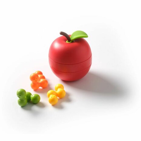 Apple Puzzler de SmartGames est un jeu de réflexion amusant où les joueurs doivent placer des vers à l’intérieur d’une pomme en trois couches en les positionnant correctement.