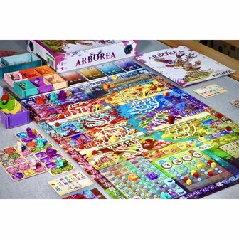 Arborea est un jeu de plateau stratégique de placement d'ouvriers publié par Alley Cat Games, conçu pour 1 à 5 joueurs à partir de 14 ans. Les joueurs incarnent des Esprits Protecteurs guidant leurs villageois pour restaurer et développer le paysage. En plaçant des ouvriers sur des chemins de pèlerinage, les joueurs collectent des ressources précieuses et attirent des créatures exotiques pour construire leur propre écosystème unique.