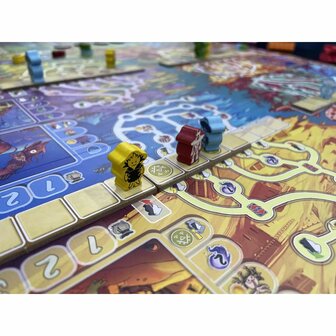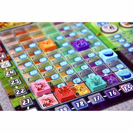 Arborea propose une expérience de placement d'ouvriers innovante où le temps et la planification sont essentiels. Les joueurs placent leurs ouvriers sur des chemins d'action qui avancent tout au long du jeu, accordant des récompenses de plus en plus grandes à mesure qu'ils progressent. Ces récompenses permettent aux joueurs de contribuer aux ressources communes, de faire des offrandes aux Sages pour obtenir des avantages futurs ou d’attirer des créatures dans les terres d’Arborea. Chaque décision influence à la fois la stratégie du joueur et celle de ses adversaires, créant une dynamique de jeu interactive et engageante.