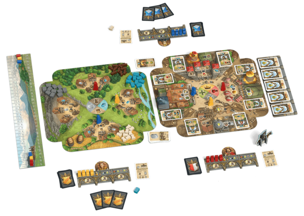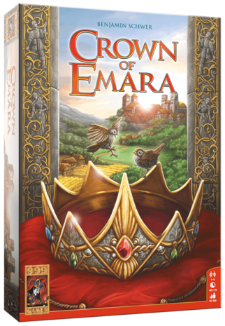 Dans Crown of Emara, les joueurs s'affrontent pour la succession de la couronne du roi. Ils doivent utiliser leurs actions et leurs conseils tactiquement et stratégiquement pour devenir le plus grand bienfaiteur des citoyens d'Emara! Le joueur dont c'est le tour choisit toujours une de ses cartes, l'endroit où il la joue et le conseiller qu'il veut jouer à ce tour. Il a des conseillers sur la terre et dans la ville. Dans l'un ou l'autre domaine, il peut effectuer différents types d'actions avec ses conseillers. Un joueur ferait bien de rassembler beaucoup de citoyens et de construire des maisons pour eux, car seuls des citoyens satisfaits voteront finalement pour lui et lui apporteront la couronne!