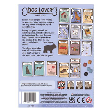 Comme de nombreuses personnes, de la famille royale à votre voisin, les joueurs sont des amoureux des chiens qui partagent la joie d'avoir d'adorables chiens. Au cours du jeu, vous devrez aller chercher des cartes, collecter des os et de la nourriture pour vos adorables chiens. Vous les sauverez du refuge, leur apprendrez de nouveaux tours et chérirez leurs traits de caractère uniques. Le joueur qui s'occupera le mieux de ses chiens adorés marquera le plus de points de victoire et remportera la partie !