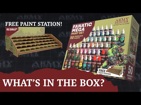 Le Warpaints Fanatic Mega Combo comprend également un guide de peinture, un pinceau pour les personnages et un pinceau pour la couche de fond - GRATUITS. Et pour couronner le tout, nous avons inclus une station de peinture exclusive pour vos peintures Warpaints Fanatic. La Paint Station vous permet de garder une vue d'ensemble de vos peintures et de les ranger entre deux séances de peinture. La station de peinture peut contenir les 50 peintures incluses dans le Mega Combo.