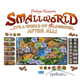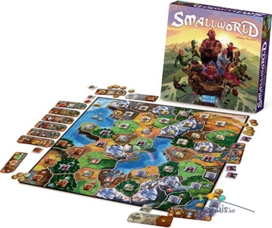 Designed by Philippe Keyaerts as a fantasy follow-up to his award-winning Vinci, Small World is inhabited by a zany cast of characters such as dwarves, wizards, amazons, giants, orcs, and even humans, who use their troops to occupy territory and conquer adjacent lands in order to push the other races off the face of the earth.