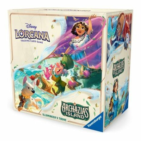 De Disney Lorcana TCG – Archazia's Island Illumineer's Trove is een uitgebreide verzamelset van Ravensburger, ontworpen voor zowel verzamelaars als spelers die hun Disney Lorcana Trading Card Game ervaring willen verrijken.Deze set biedt niet alleen een schat aan kaarten, maar ook essentiële accessoires om je spel en verzameling te organiseren en te verbeteren.​