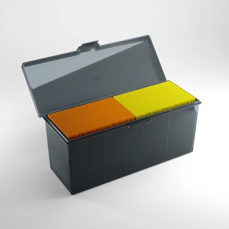 Des jeux, des dés, des jetons ou 320 cartes à double pochette : il y a beaucoup de choses que la Fourtress peut contenir et protéger ! Cette boîte robuste existe en différentes couleurs semi-transparentes, pour que le contenu soit facile à reconnaître. La serrure intégrée maintient la boîte bien fermée, tandis que deux parois intérieures peuvent être retirées pour créer des compartiments plus grands. Les boîtes sont empilables, elles sont donc à la fois de parfaits compagnons de voyage et une excellente solution de rangement à la maison.