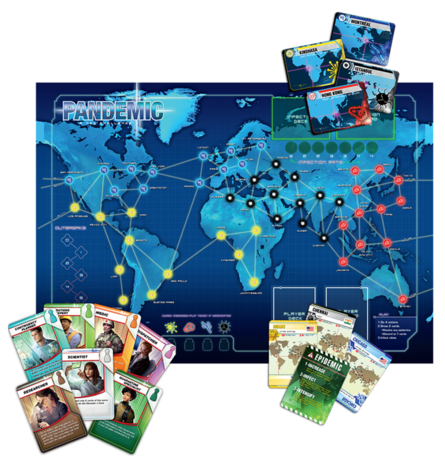 In het coöperatief bordspel Pandemic zijn de spelers leden van een eliteteam dat ten strijde trekt tegen vier bijzonder dodelijke ziektes (een pandemie uitbraak!). Het team reist over de hele wereld om de vloedgolf van infecties in te dammen en om kennis en hulpbronnen op te doen om medicijnen te ontwikkelen. Lukt het jou om de mensheid te redden?