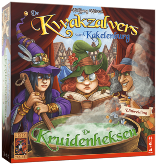 Deze uitbreiding op het spel De Kwakzalvers van Kakelenburg bevat onder meer speelmateriaal voor een vijfde speler en nieuwe ingrediëntenboeken. Verder vind je een nieuw ingredient, het narrenkruid, waarvan de waarde van de situatie in je ketel afhangt. Elk spel worden daarnaast kruidenheksen getrokken, die de spelers tijdens het spel eenmaal van dienst kunnen zijn met hun bijzondere vaardigheden! Met “De Kruidenheksen” wordt “De Kwakzalvers van Kakelenburg” nog leuker en spannender. Roeren maar in die ketel!