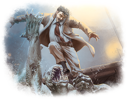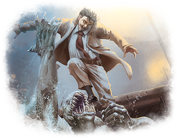 Not far from Arkham, the stooped and weathered town of Innsmouth squats on the Atlantic coast. An aura of decrepitude and decay hangs over the city like the ocean fog, from the weirdly glowing windows of the Gilman House to the deserted and toppling Fish Street bridge. Beyond the city limits, the Innsmouth shoreline is pocked with half-flooded tidal tunnels and unnatural coves. Who knows what strange, abyssal trinkets you might find, among the skeletons of fish and rotting seaweed?
