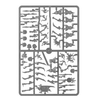 Inside the set, you’ll find enough stabbas, pokin’ spears and Moon Shields to build a unit of Stabbas, or enough Moonclan bows and slittas to build a unit of Shootas. You’ll also find a choice of Icon Bearers, a Gong Basher, 2 barbed nets and a special stabba for denoting the unit’s Moonclan Boss.