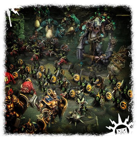 Moonclan Stabbas form ragged ranks that advance upon the foe with gongs clanging and banners waving. Eyes bulging with the madness of the Gloomspite, they pour over the enemy lines and stab wildly at everything in their path.