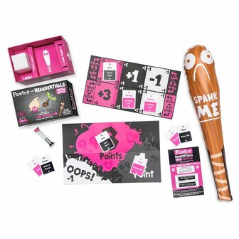 Het spel bevat 200 kaarten, 1 zandloper, 2 speelborden, Grok's poëzie kaarten en 1 opblaasbare knuppel. En natuurlijk met hilarische illustraties van Matthew Inman van The Oatmeal.
