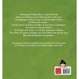 Vandaag geeft heksje Mimi een griezelfeestje! Samen met Roosje en poes Bobo bereidt ze alles voor. Uitnodigingen schrijven, taart en heksenkoekjes bakken, toverlimonade maken ... En dan komen de heksenvriendjes op hun bezem aangevlogen. Het wordt een leuk griezelfeest. De heksjes eten, lachen en vertellen spannende verhalen. Poes Bobo eet intussen stilletjes van al het lekkers dat op tafel staat. Maar dat had hij beter niet gedaan ...