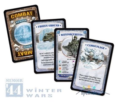 - 20 Winter Gevechtskaarten, qua concept vergelijkbaar met de Stedelijke Gevechtskaarten die geïntroduceerd werden in Memoir '44: Zwaard van Stalingrad