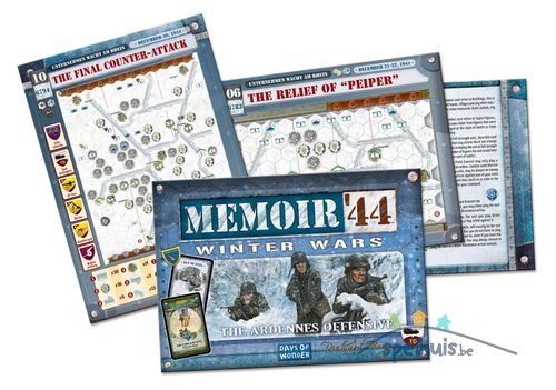 Deze zullen allemaal van cruciaal belang zijn bij het vechten (en winnen!) van de tien scenario's die dit boekje bevat en die allemaal gericht zijn op die cruciale 2 weken van Kerstmis 1944 in de Ardennen. De eerste zes scenario's die erbij zitten zijn allemaal standaardscenario's, speelbaar met een enkel basisspel en deze uitbreiding alleen (hoewel een Memoir '44: Winter/Desert Board Map een mooi cosmetisch tintje aan je slagveld geeft). De vier scenario's die volgen zijn gigantische Doorbraak-vertolkingen van de Slag om de Ardennen. Deze vereisen een enkel exemplaar van de reeds verschenen Memoir '44: Eastern Front uitbreiding, en de Memoir '44: Breakthrough kaarten, naast de eerder genoemde uitbreiding.
