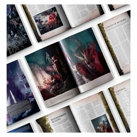 - 24 warscrolls and pitched battle profiles for bloodthirsty aelves, from ruthless Hag Queens and winged Khinerai to both of Morathi-Khaine’s divine forms
