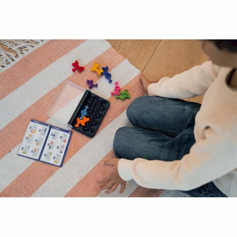 Kies één van de 120 opdrachten en leg de zacht-aanvoelende puzzelstukken op de juiste plaats én in de juiste richting. Past een puzzelstuk niet, dan kan het helpen om het puzzelstuk 90° te draaien…maar niet altijd. IQ Waves is een compact spel dat je makkelijk overal mee naar toe neemt en is geschikt voor jong én oud. Zitten jouw hersens op de juiste golflengte?