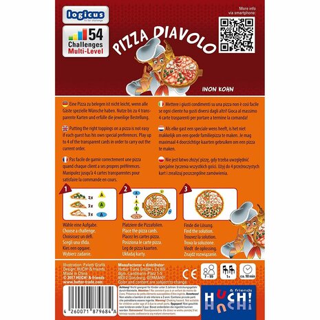 Pizza Diavolo is een spel voor 1 speler vanaf 7 jaar met 54 levels in stijgende moeilijkheidsgraad.