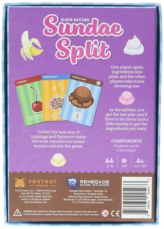 In Sundae Split proberen spelers de beste ijsjes te maken door ingrediënten te verzamelen. Probeer de juiste toppings en smaken te krijgen, maar vermijd groenten! Aan het einde van het spel worden de ijsjes gescoord en de speler met het beste ijsje wint het spel.